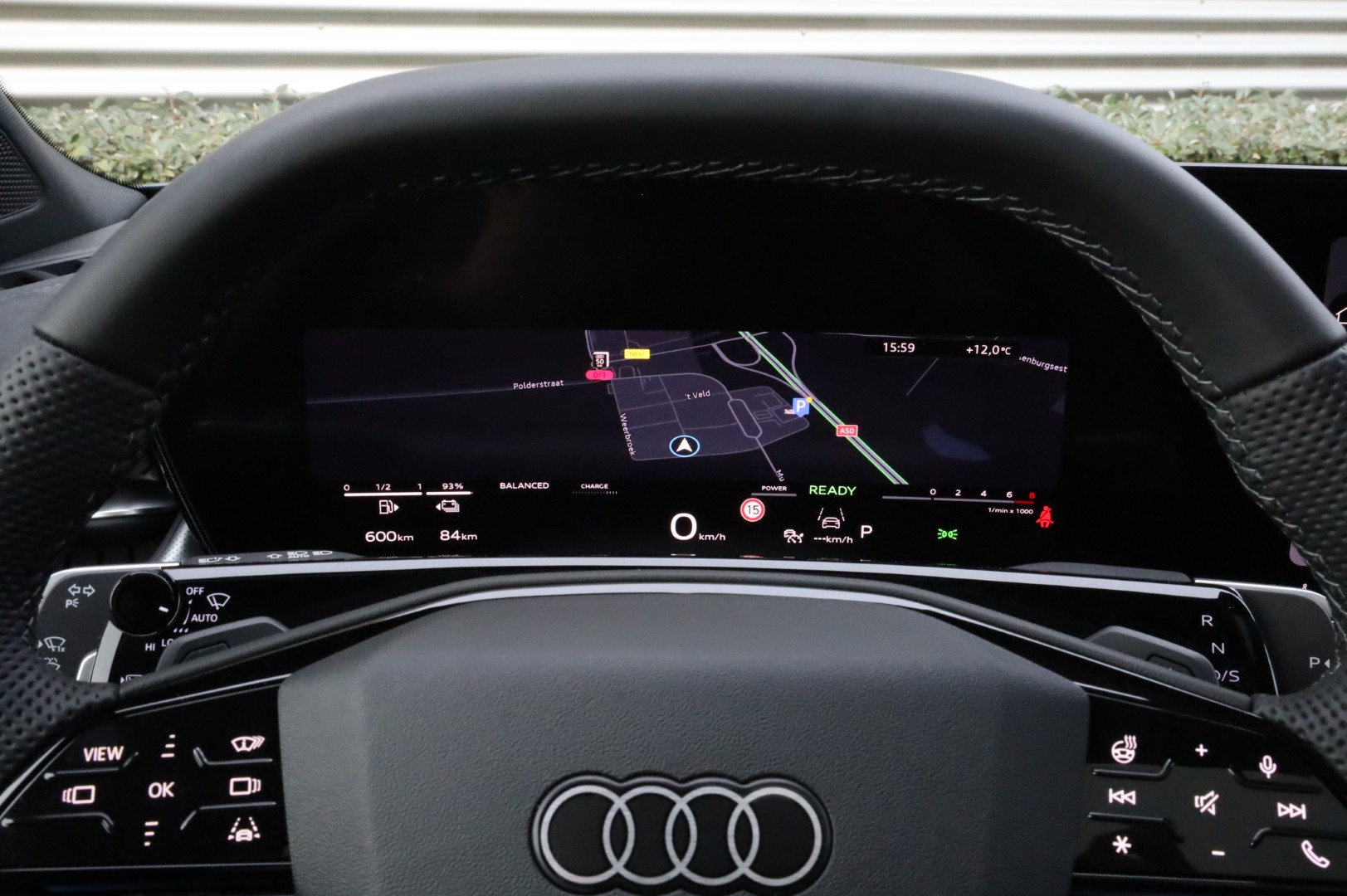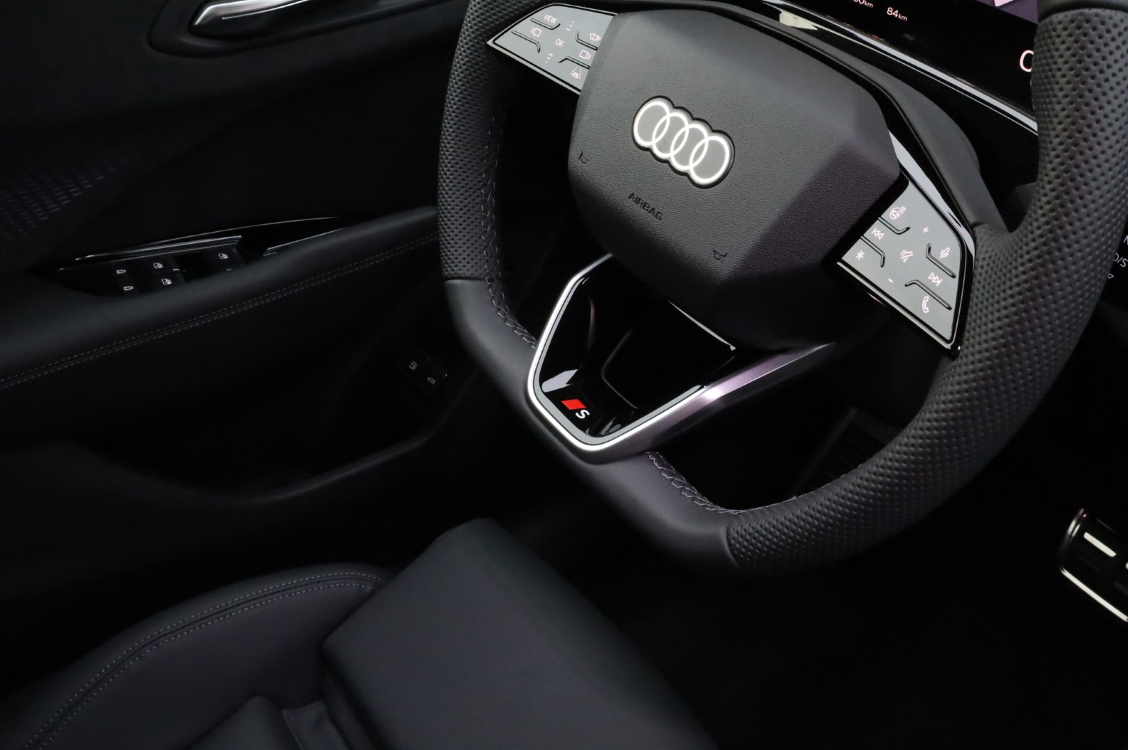 - Multifunctioneel lederen sportstuur, afgevlakt aan de boven- en onderzijde met schakelfunctie