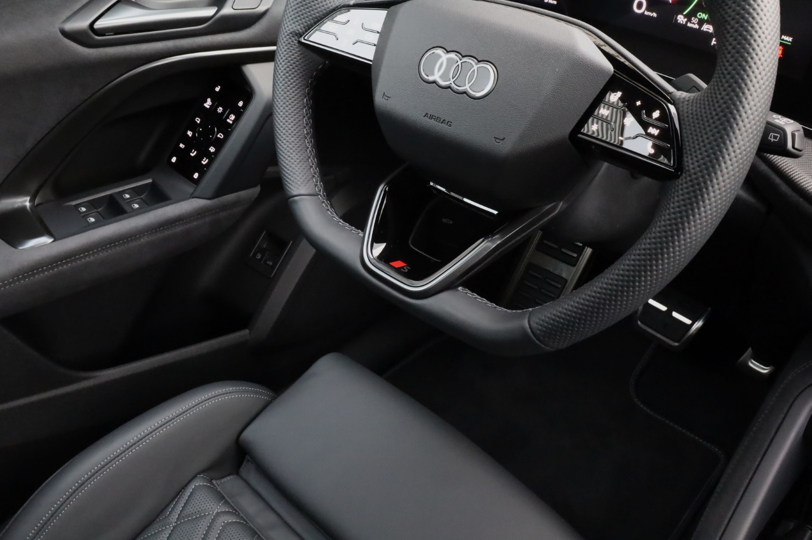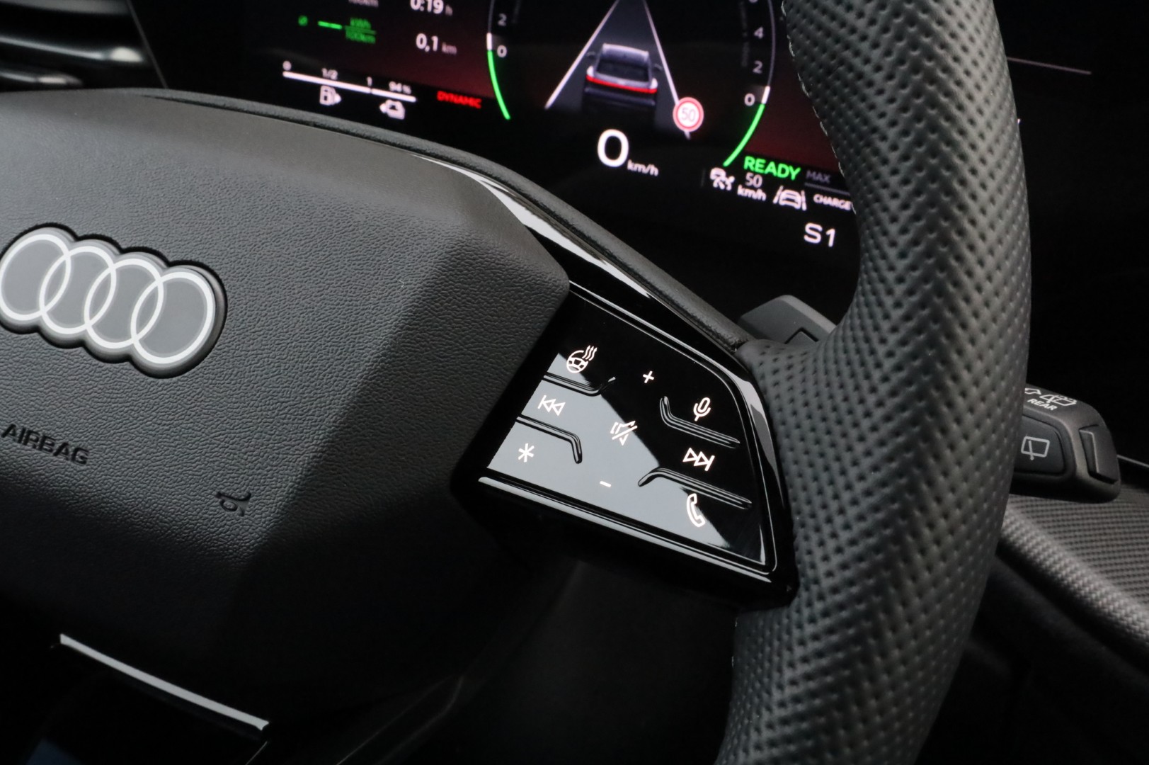 - Multifunctioneel lederen sportstuur, afgevlakt aan de boven- en onderzijde met schakelfunctie